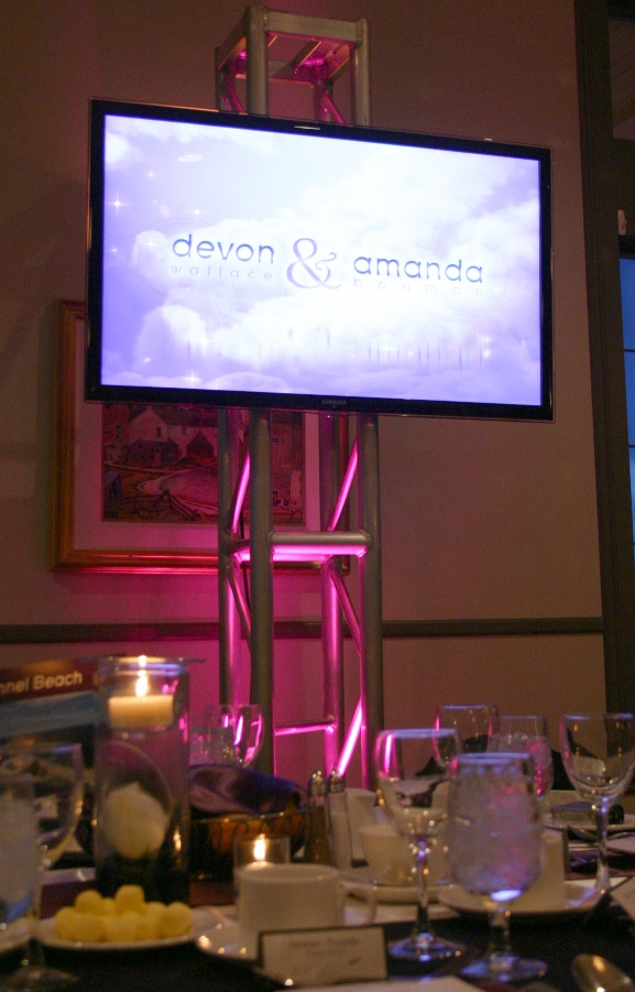 Add 1 or more projector/video screens to any Wedding DJ system. Perfect for slide shows, music videos and presentations.
